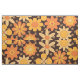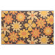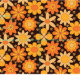 This is retro 70s vintage groovy floral pattern in orange and yellow over dark background.