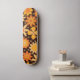 This is retro 70s vintage groovy floral pattern in orange and yellow over dark background. It's great looking skateboard
