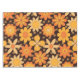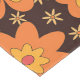 This is retro 70s vintage groovy floral pattern in orange and yellow over dark background. It's great looking tablecloth