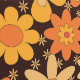 This is retro 70s vintage groovy floral pattern in orange and yellow over dark background. It's great looking wallpaper for women who love retro 70s floral designs