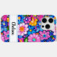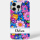 Make a retro statement with this groovy 70s inspired hippie flower power floral iphone 15 pro max phone case! It's modern and trendy with bright multi-coloured painted flowers. Make it uniquely yours with your name in a modern script font in black. It will look fabulous on your phone!