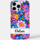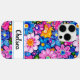 Make a retro statement with this groovy 70s inspired hippie flower power floral iphone 16 pro max phone case! It's modern and trendy with bright multi-colored painted flowers. Make it uniquely yours with your name in a modern script font in black. It will look fabulous on your phone!