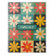 Keep track of all your great ideas with this spiral notebook. It features a retro box pattern featuring daisy flowers in pink, yellow, and white on dark grey and turquoise on the cover with space for a name or other text. Makes a great personalised gift for someone who loves retro flowers and daisies.