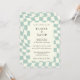 Retro Groovy Green Chequerboard Wedding Invitation