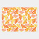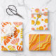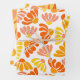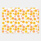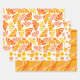 Groovy orange and yellow mod flowers, dots, and swirls as an assorted wrapping paper set.