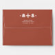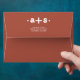 Retro groovy initials terracotta fall wedding envelope. The outside of the envelope is of terracotta colour with your initials and address on the flap. The inside includes a floral pattern.
