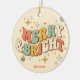 Retro Groovy Merry & Bright Christmas Ceramic Tree Decoration