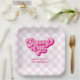 Retro Groovy One Pink and White Check Paper Plate