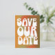 Retro Groovy Orange Trendy Gradient Save The Date Postcard