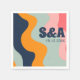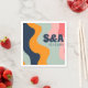 1970s vintage retro groovy waves personalised wedding monogram paper napkins in groovy bold typography and pastel colours including; pink and blue. This product is easily editable. If you need help with the customisation of this product or you need more matching products for this collection kindly message me via Zazzle.