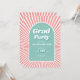 Retro groovy pink and aqua sunrays 70s Graduation Invitation