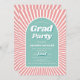 Class of 2024 Retro groovy peach pink and aqua sunrays 70s inspired Graduation Party Invitation. This Graduation Party Invitation is inspired by the groovy and vibrant 70s era, featuring a retro peach pink and aqua colour scheme. The front showcases a captivating arch shape in aqua and white, with a sunray pattern in peach-pink for a unique look. The phrase 'Grad Party' is written in a retro font to enhance the nostalgic feel. Turning the invitation over, a vintage aesthetic is achieved by incorporating a photo of the graduate within the same arch shape, blending past and present. With its retro elements, vibrant colours, and thoughtful design, this invitation is perfect for a graduation celebration with a 70s vibe.