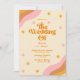 Retro Groovy Pink and Gold Wave Wedding Invitation