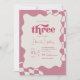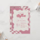 Retro Groovy Pink Checkered Three 3rd Birthday Inv Invitation
