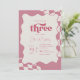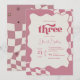 3rd birthday invitation, three groovy, retro 3rd birthday, pink checkered, girl third birthday, groovy birthday invitation, 70s birthday theme, wavy border, pink and cream, checkered pattern, modern retro birthday, young wild and three, aesthetic birthday invite, third birthday party, bohemian birthday, whimsical invitation, three years old, pink birthday, groovy girl, checkered stationery