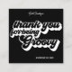 Black and white retro "Thank you for being groovy" social media share package inserts.