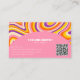 Retro Groovy Pink White QR Code 70s Psychedelic Business Card