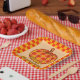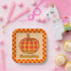 Retro groovy style colourful red and orange chequered paper plate. Elegant retro font typography "Happy Thanksgiving", with a cute plaid pumpkin and red and orange chequered frame.