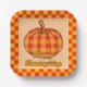 Retro Groovy Plaid Pumpkin Chequered Thanksgiving Paper Plate