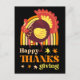 A colourful greeting card with elegant typography "thanksgiving" text, and a cute turkey with some autumn leaves. The card includes a wonderful greeting message at the back which can be personalised.