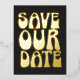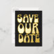 Retro Groovy 70s Black and Gold Foil Save the Date Postcard