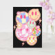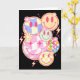 Retro Groovy Smile Face Flower Happy Face Checkere Card