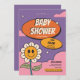 Celebrate the upcoming arrival with this groovy baby shower invitation! Featuring a cheerful sunflower face, fun retro typography, and colourful pastel vibes, this design is perfect for a lighthearted and stylish baby shower. Fully customisable for names, date, and RSVP info.