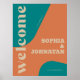 Stylish vibrant colorful teal, burnt rusty orange, and beige retro 70s funky modern wedding welcome sign printable poster. Digital download available.