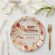 Retro groovy terracotta burgundy 60th birthday paper plate