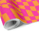 Retro Groovy Warped Checkerboard Hot Pink Orange Wrapping Paper