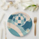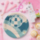 Retro Groovy Wave Disco Ball Daisy Green Birthday Paper Plate