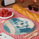 Retro birthday design featuring a disco ball with cute daisy flowers on a groovy wave background. Perfect party supplies for a retro disco-themed birthday.