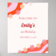 Birthday Party welcome sign featuring a retro groovy daisy and a heart.