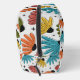 Retro-inspired pattern of bright flowers in blue, green, yellow, red, and orange with vintage mid-century modern halftone and star details.