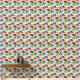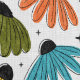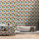 Retro-inspired pattern of bright flowers in blue, green, yellow, red, and orange with vintage mid-century modern halftone and star details.