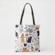 Carry your goods with a touch of vintage charm this spooky season! This tote bag features an adorable, hand-drawn pattern of classic Halloween motifs. The design includes various cats—some wearing witch hats and wings—alongside traditional icons like jack-o'-lanterns, spiders, ghosts, cauldrons, and brooms.