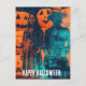 AI generated art of a haunted Halloween house double exposure faded retro photo of a couple of women and jack o lanterns