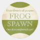 A retro Halloween sticker designed to look like a label for some frog spawn. The design is half khaki green and half beige and features plenty of space for you to change the text to suit your preference. This is designed to be used to label a cocktail or decorations at a Halloween party or any other spooky themed event.