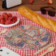Fun and cute retro halloween design featuring cats, bats, spiders and pumpkins!