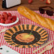 Retro style Halloween plates with black and orange rays and a jack o'lantern.