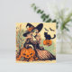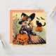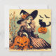 Retro Halloween Witch with Black Cat and Pumpkin Card