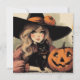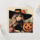 Retro Halloween Witch with Black Cat and Pumpkin Card