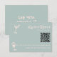A unique and elegant calligraphy colourful retro wedding rsvp card. As you see it has a vintage modern blue background with blush pink hand written script and hand drawn painted champagne and martini glasses. And customisable QR code so your invites could rsvp online easily. You can edit it by clicking on the personalise button.