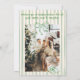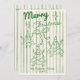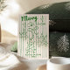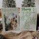 If you are looking for a unique elegant and easy editable Christmas card. This one is perfect for you. And as you see, the design features a green hand made and drawn three funny fun Christmas trees and bow, With whimsical green hand written typography of MERRY CHRISTMAS. All on light watercolor green stripes. And your family name and year at the bottom. And In the back you got a a customisable Christmas greeting and family photo with a bow.