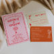Retro Hand Drawn Pink Red Photo QR Code Wedding Invitation