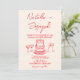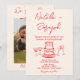 Retro Hand Drawn Red Cake Unique Photo Wedding Invitation