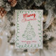 Retro Hand Drawn Red Green Vintage Christmas Tree Holiday Card