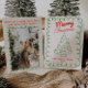 If you are looking for a simple minimalist beautiful and easy editable Christmas card. This one is perfect for you. And as you see the design features a green hand made and drawn Christmas tree, With whimsical red hand written typography of MERRY CHRISTMAS. All inside a wavy hand drawn frame. And your family name and year under it. And In the back you got a a customisable Christmas greeting and family photo inside a hand drawn green frame.