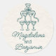 Retro Hand Drawn Teal Champagne Tower Names Classic Round Sticker