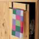 This fun kitchen towel has a very traditional hand knitted appearance, the knitted squares print on the towel is taken from a photograph of an original hand knitted pattern. The original multi coloured knitted blanket has been photographed to show it looking natural and "pre loved" you may even see a few pet hairs! and there will be bobbly bits, stray threads and creases, this all makes up the natural look.